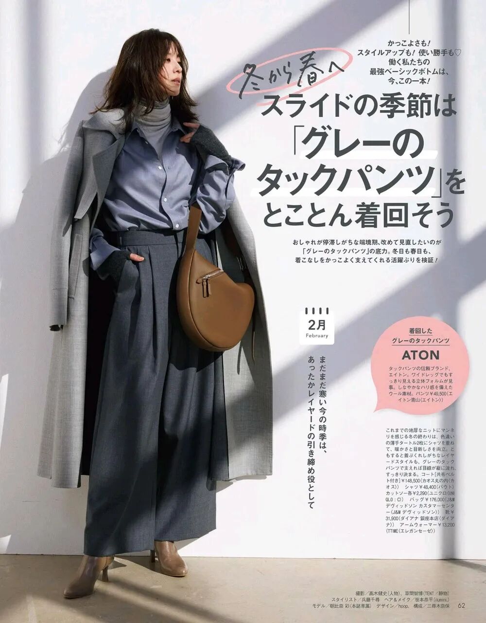 A butter-yellow shirt under brown layers bridges winter warmth and early-spring freshness.