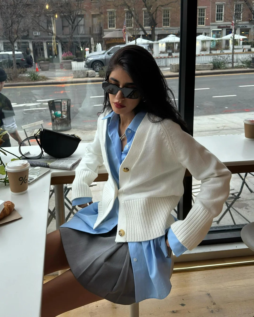 Sometimes, a simple styling twist — like tying a sweater casually around the shoulders or waist — can change the entire mood. It looks relaxed, unintentional even, but in photos it reads as that curated, undone aesthetic many people love.