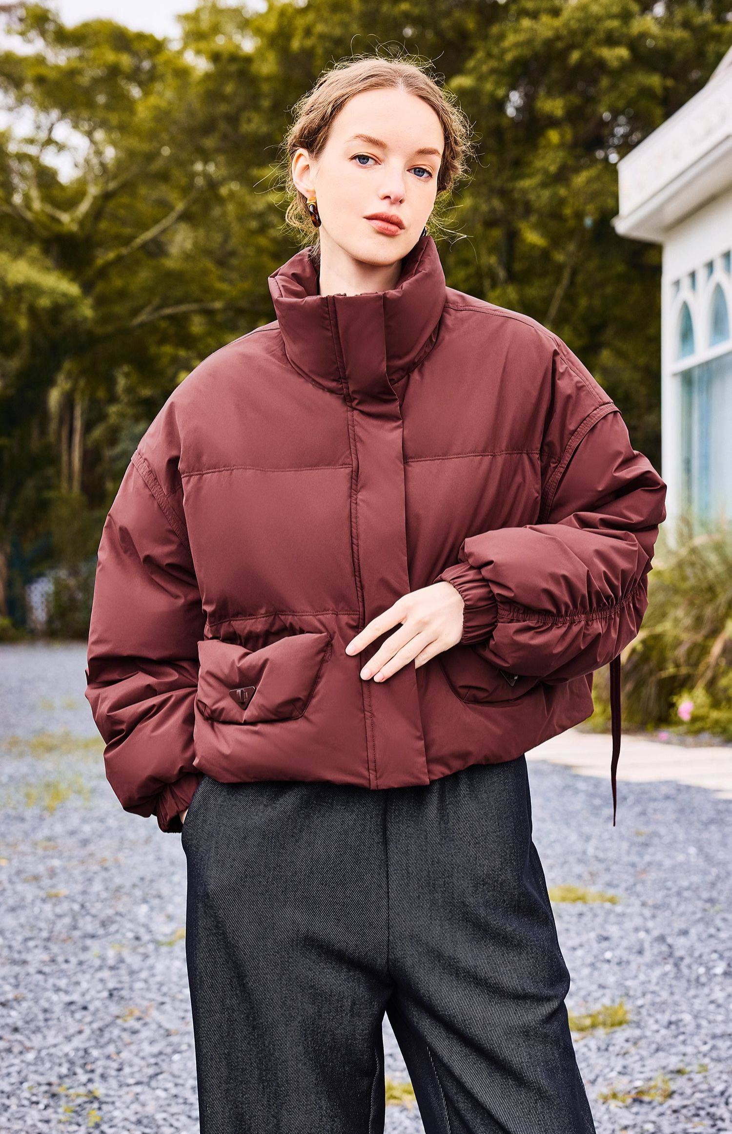 Short down jackets are easy to layer and perfect for everyday winter looks.
