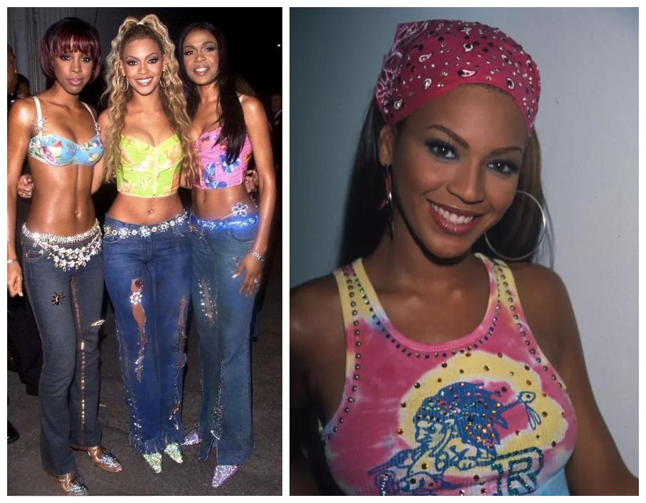 Fitted, cropped t-shirts—often emblazoned with logos, slogans, or rhinestones—were staples of the Y2K wardrobe. These were frequently paired with low-rise jeans or skirts for maximum midriff exposure.