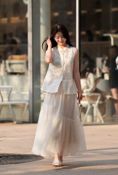 When selecting a sleeveless blouse, consider the armhole size to ensure it's not too tight or too loose. Check the bust and waist measurements to find a flattering fit. If you're unsure, opt for a slightly looser fit that allows for movement and breathability. Pay attention to the length as well, ensuring it sits comfortably on your torso without riding up.