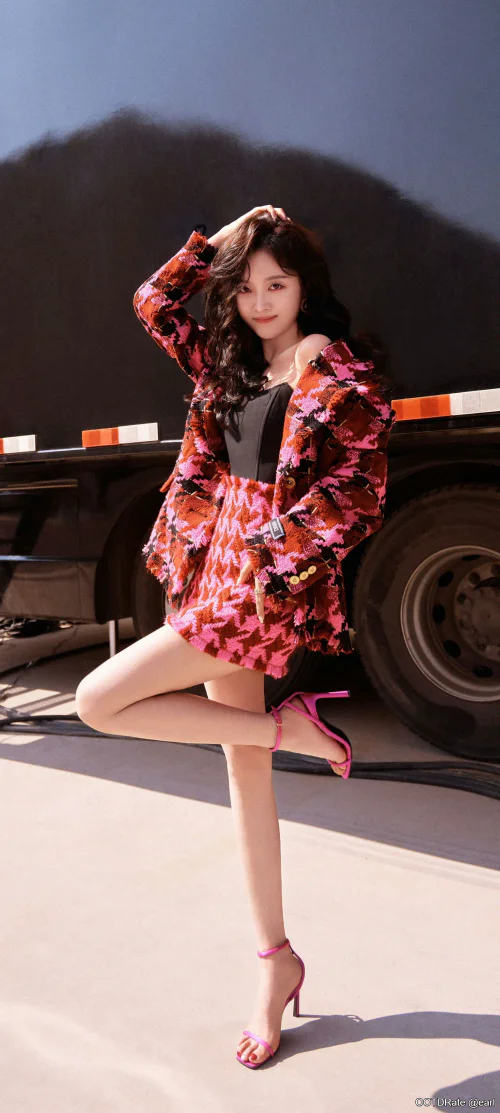 Bold Pink and Black Houndstooth Outfit with Heels for a Chic Look