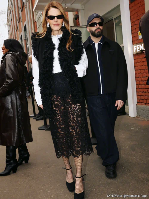 Modern Elegance with Black Lace and Fur Vest Ensemble