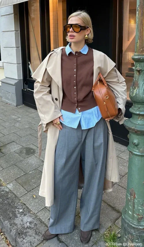 Current fashion trends for layered outfits include mixing unexpected pieces like a slip dress over a turtleneck, pairing a crop top with a blazer and high-waisted pants, or layering a longline vest over a midi dress. Experiment with bold colors, patterns, and accessories to add a contemporary twist to your layered ensembles.