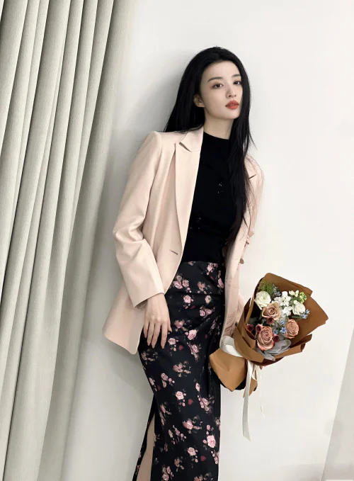 Pink blazers can be styled in numerous ways. For a chic office look, pair a pink blazer with tailored trousers and a blouse. To create a trendy casual outfit, team it with high-waisted jeans and a white tee. For a feminine touch, layer it over a floral dress. Don't be afraid to mix and match with different colors like white, navy, black, or even other shades of pink to create stylish ensembles.