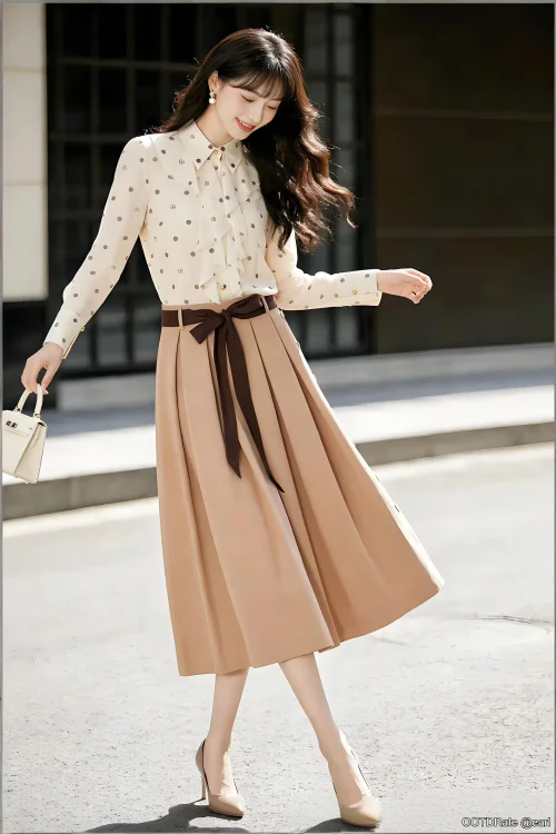 A pleated skirt is a timeless and versatile piece that adds movement and sophistication to any outfit. Its elegant draping and texture make it a favorite among fashion enthusiasts for its feminine charm and ability to effortlessly elevate any look.