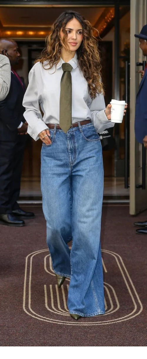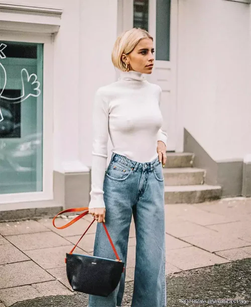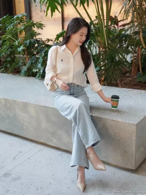 Wide-leg jeans can be styled in various ways to create different looks. For a casual vibe, pair them with a tucked-in graphic tee and sneakers. To elevate the outfit, opt for a fitted blouse and heels. Tucking in your top can help define your waist and balance the wide silhouette of the jeans.