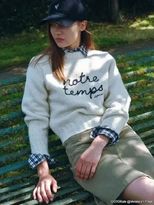 Casual Chic with Knit Sweater and Plaid Shirt Layering