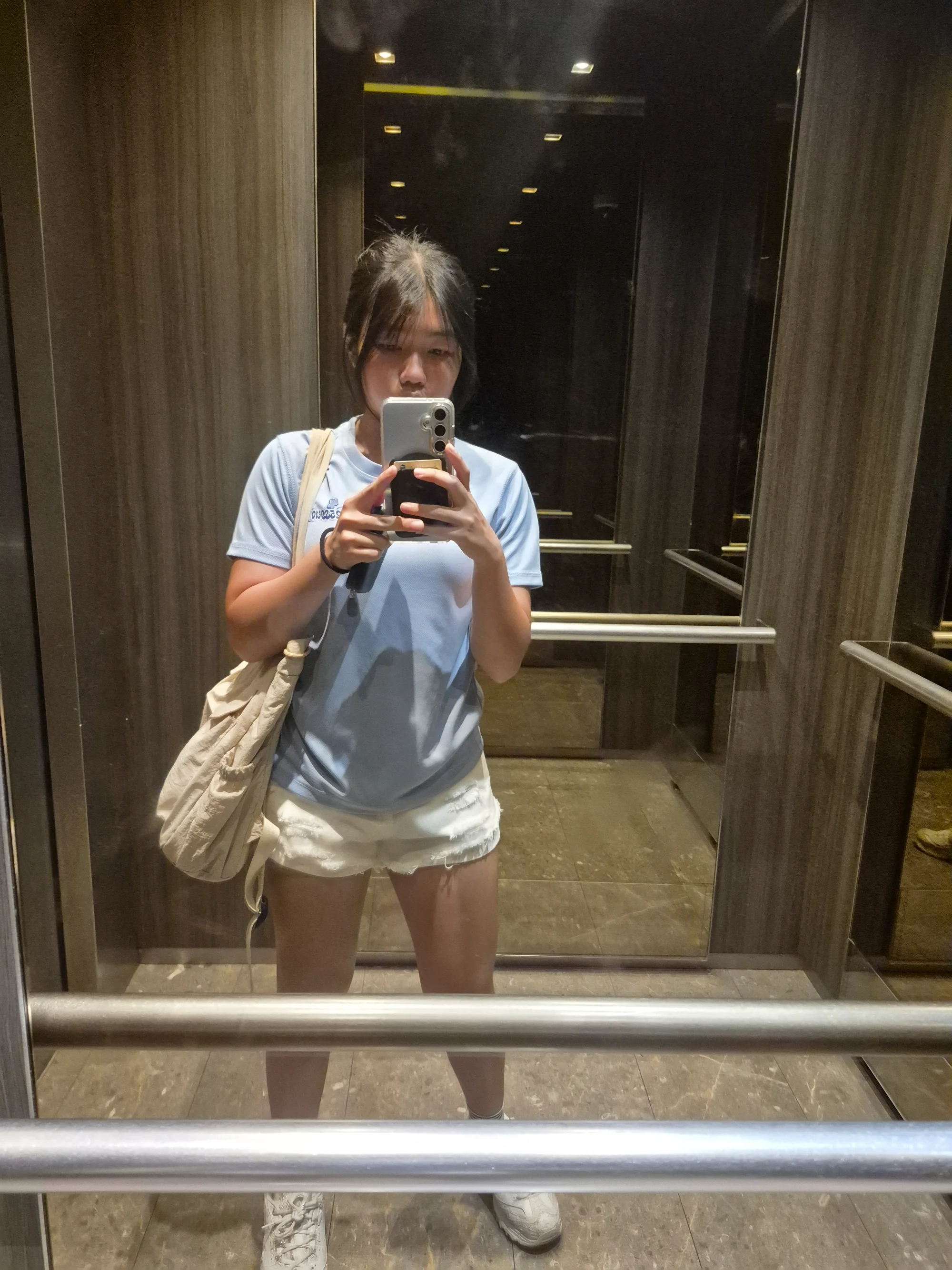 Casual Day Out Style with Light Blue Shirt and White Shorts