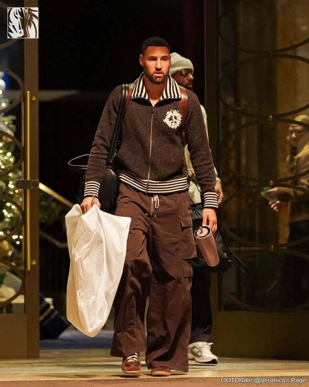 The cargo pants are a complementary choice, following the same brown color palette as the jacket. The multiple pockets add utility and a relaxed vibe to the ensemble. However, the fit of the pants seems a bit too loose, which could obscure the overall silhouette and may not be the most flattering choice. A more tapered fit might enhance the appearance and create a more polished look.