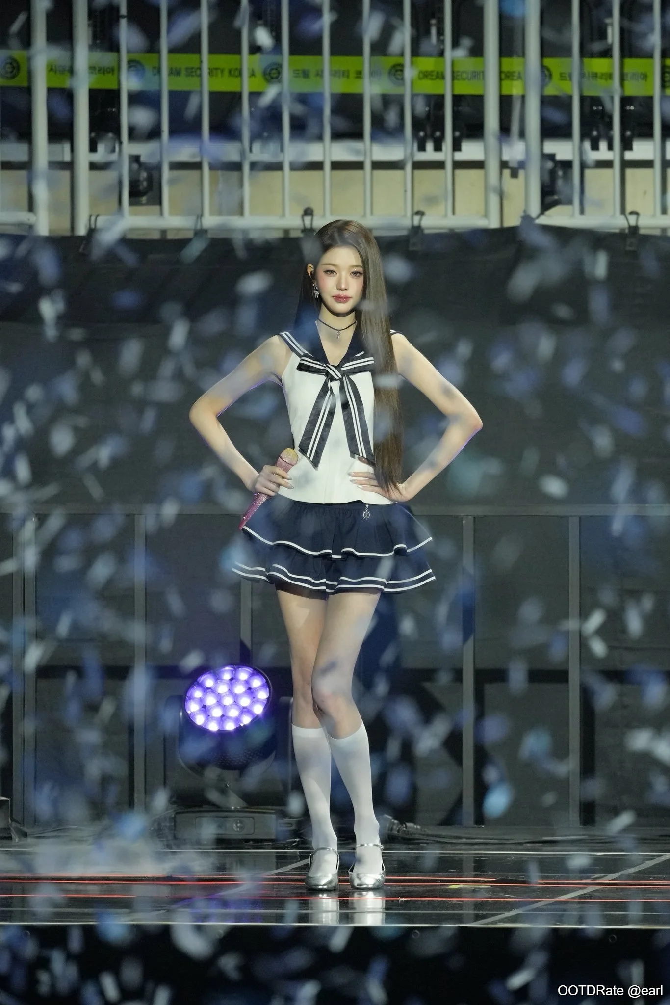 Jang Wonyoung Nautical-Inspired Outfit with Sailor Collar and Flared Skirt