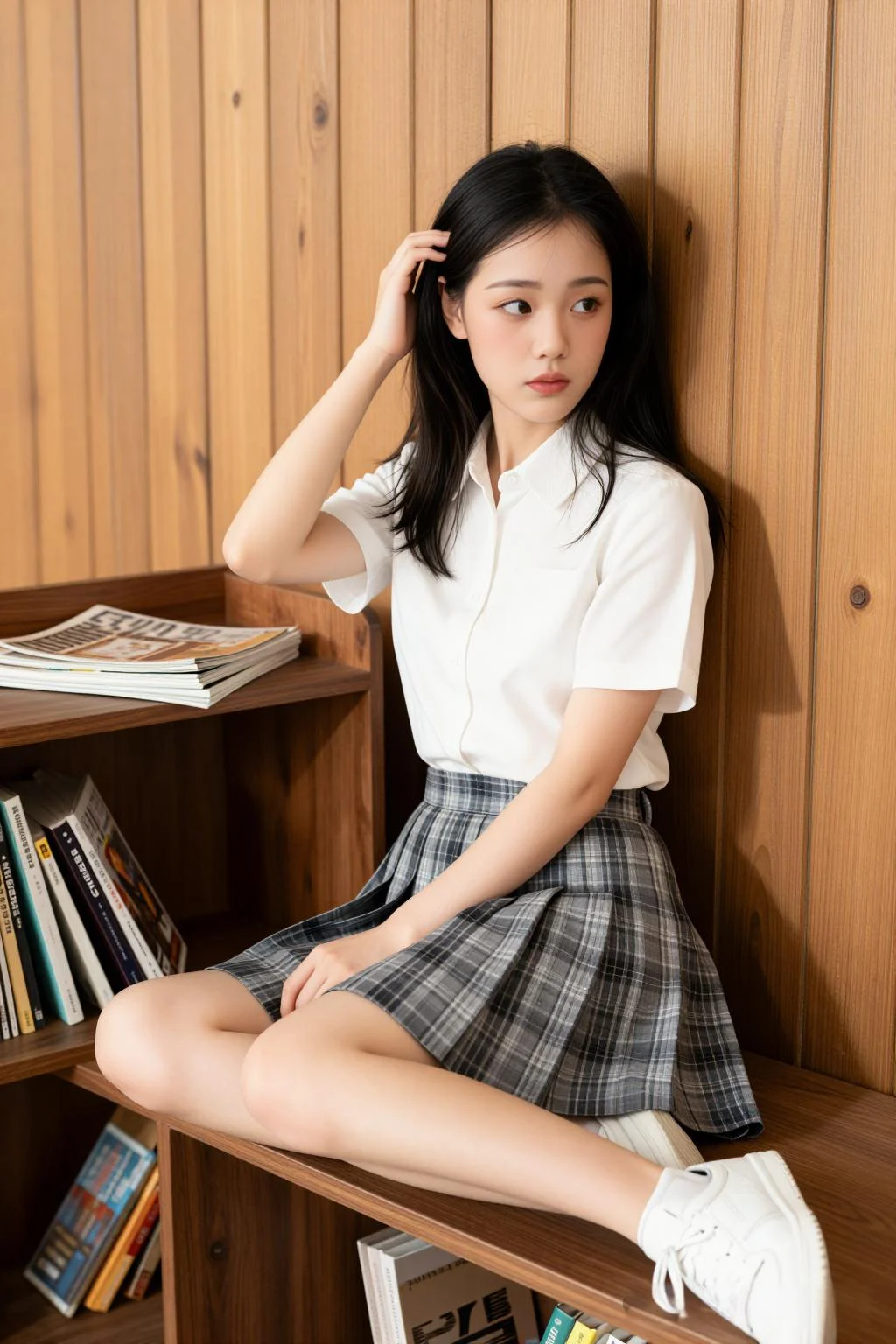 Timeless Preppy Style: White Shirt and Plaid Skirt with Sneakers