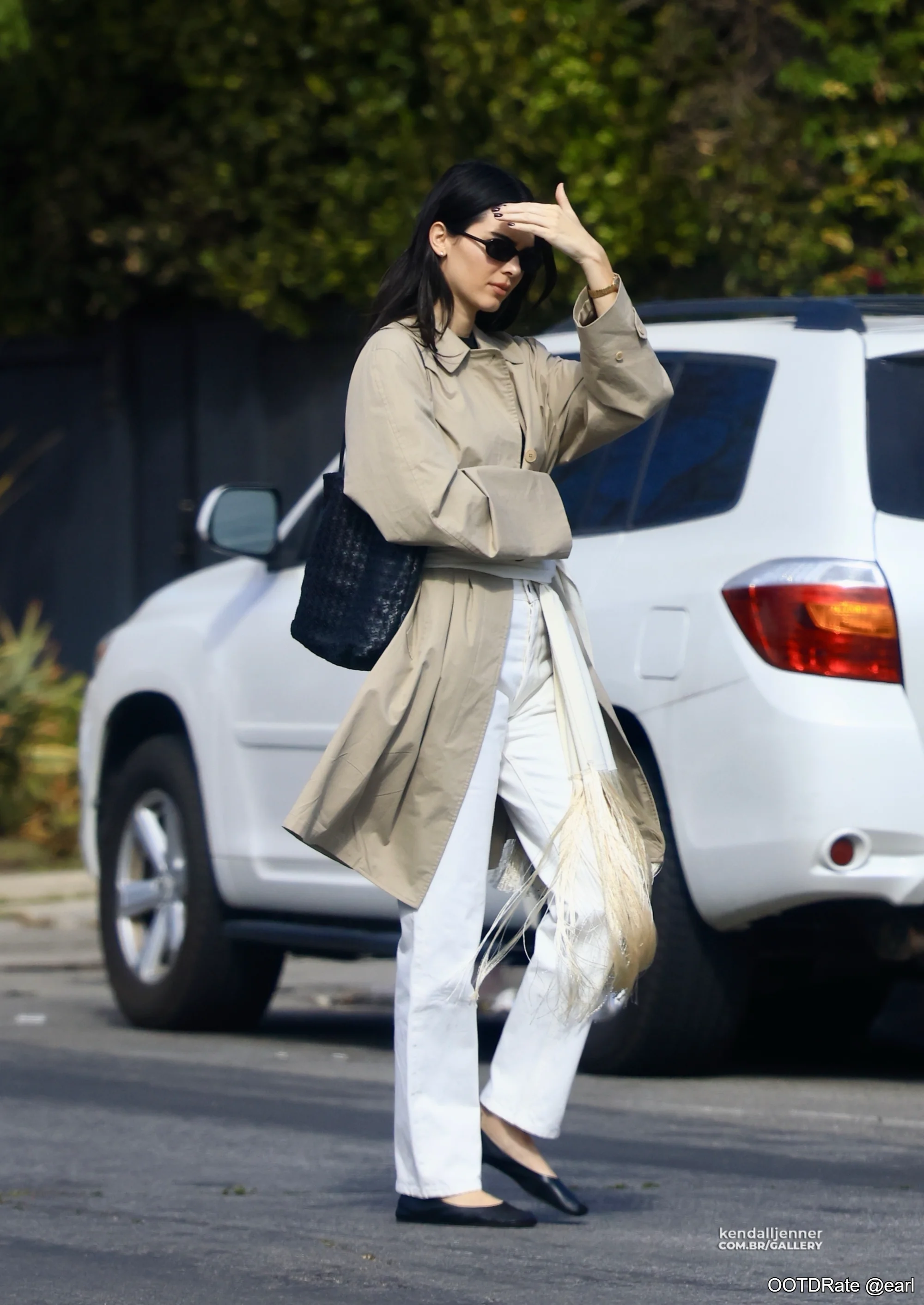 Kendall Jenner OOTD: Classic Tan Trench Coat with White Trousers
