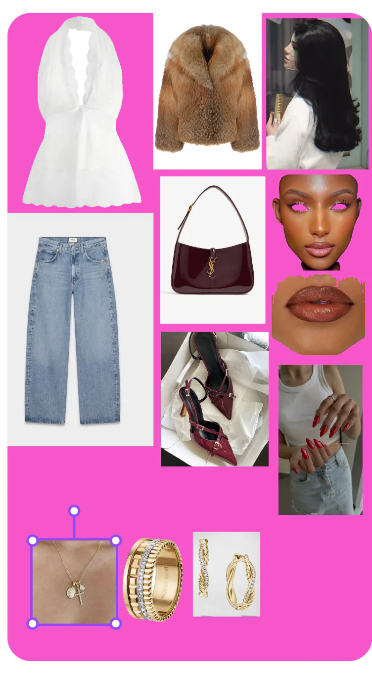 For improvement, consider swapping the fur coat for a sustainable faux option to maintain an ethical approach. Additionally, integrating a pop of color through a scarf or hair accessory could enhance the vibrancy and personalize the style.