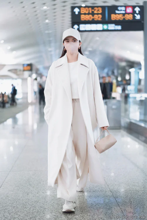 Airport OOTD: Elegant Minimalist Travel Outfit with White Coat and Wide-Leg Trousers